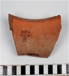 | Description / विवरण | A fragment of a vase of red ware with out turned rim, concave neck, oblique sides of medium fabric. |
