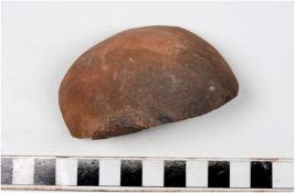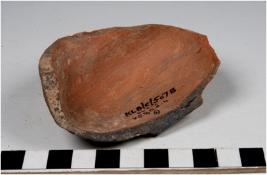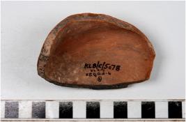 | Description / विवरण | A fragment of a pot of red ware with broken rim, globular body of medium fabric in oxidized core and smoky surface. |