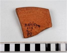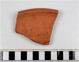 | Description / विवरण | A fragment of a basin of red ware with externally thickened rim, straight sides of thick fabric well levigated. |