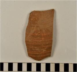 | Description / विवरण | A potsherd of a red ware having incised horizontal lines on surface of medium fabric ill fired. |