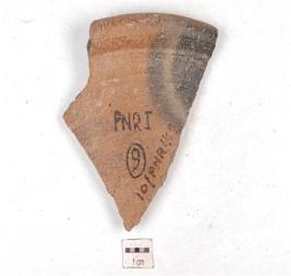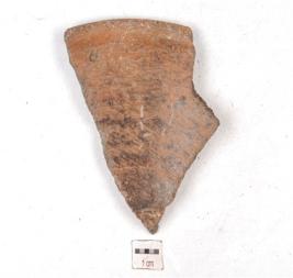 | Description / विवरण | A fragment of a pot sherd of red ware with two horizontally groove lines on the exterior surface of medium fabric, showing an oxidized core and treated with red slip. |