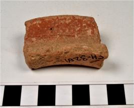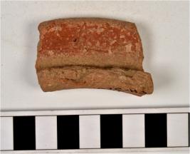 | Description / विवरण | A fragment of a vase of red ware with flaring rim, concave neck and oblique sides of coarse fabric. |
