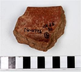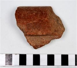 | Description / विवरण | A fragment of a basin of red ware with incurved rim, tapering sides, treated with red slip and thick fabric. |