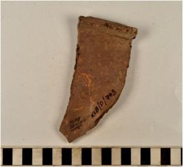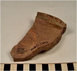 | Description / विवरण | A potsherd of red ware rough and cracked surface, ill fired object. |