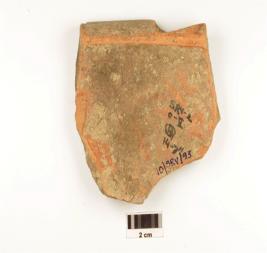 | Description / विवरण | A base fragment of a buff dull red ware with disc base, well baked and medium fabric. |