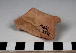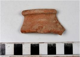 | Description / विवरण | A fragment of a miniature vase of red ware with out turned rim, concave neck and tapering sides of medium fabric rough surface. |