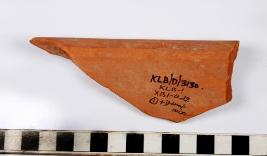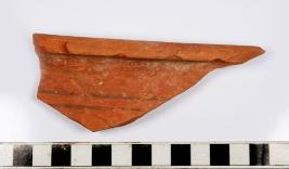 | Description / विवरण | A fragment of a vase of slipped red ware with out turned rim, concave neck, oblique sides, showing black horizontal bands on exterior of fine fabric. |