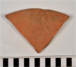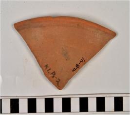 | Description / विवरण | A fragment of a bowl of red ware with featureless rim, tapering sides, showing rows of incised continuous wavy lines inside, of fine fabric. |
