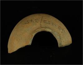 | Description / विवरण | Fragment of a faience miniature pot, smooth surface, decorated with incised lines. |
