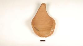 | Description / विवरण | Fragment of an elongated vase of red ware treated with buff slip on the exterior |