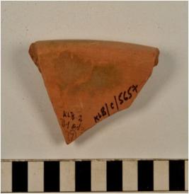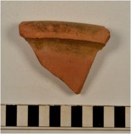 | Description / विवरण | A fragment of a basin of red ware with out turned rim, oblique sides of thick fabric, fine texture. |