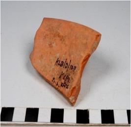 | Description / विवरण | A fragment of a bowl of red ware with featureless rim, oblique sides of fine fabric. |
