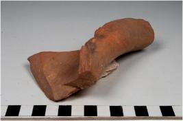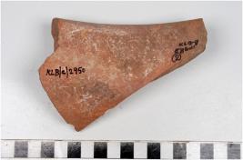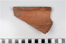 | Description / विवरण | A fragment of a jar of red ware with flanged rim, concave neck and tapering sides of thick fabric well levigated. |