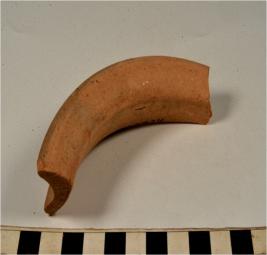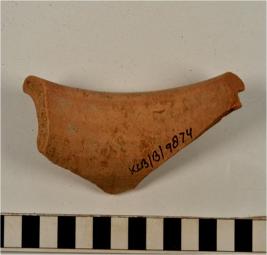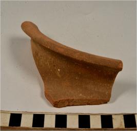 | Description / विवरण | A fragment of a vase of red ware with flanged rim, concave neck, tapering sides of medium fabric. |