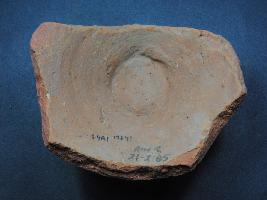 | Description / विवरण | It is a broken fragment of a bowl made of terracotta was found in Agroha trench no.XE7, layer no.1. It is well fired and color is red. It has some cut marks and flaking on its surfaces. It is a wheel made pottery.Its upper part is missing. |
