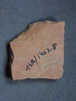 | Description / विवरण | It is a broken fragment of a pot made of terracotta was found in Agroha trench no. WA26, layer no.3. It is well fired and color is red. It has some cut marks and flaking on its surface. It is wheel made pottery. |