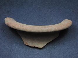 | Description / विवरण | It is a broken rim fragment of a pot made of terracotta was found in Agroha trench no. XC2, layer no.4. It is well fired and color is red. It has some cut marks and flaking on its surface. It is wheel made pottery. |