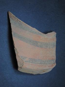 | Description / विवरण | It is a broken fragment of a pot made of terracotta was found in Agroha trench no. XAW9, layer no.11. It is well fired and color is red. It has some cut marks and flaking on its surface. It is wheel made pottery. |