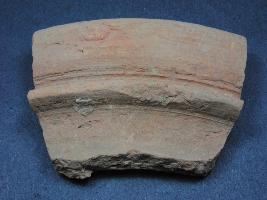 | Description / विवरण | It is a broken rim fragment of a pot made of terracotta was found in Agroha trench no. WA13, layer no.13. It is well fired and color is red. It has some cut marks and flaking on its surface. It is wheel made pottery. |