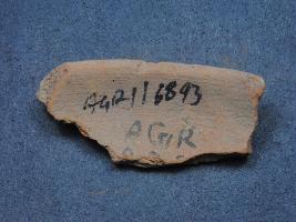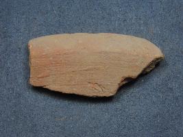 | Description / विवरण | It is a broken fragment of a bowl made of terracotta was found in Agroha trench no.XD1, layer no.7. It is well fired and color is red. It has some cut marks and flaking on its surfaces. It is a wheel made pottery. |