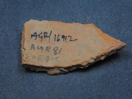 | Description / विवरण | It is a broken fragment of a pot made of terracotta was found in Agroha trench no. XE9, layer no.3. It is well fired and color is red. It has some cut marks and flaking on its surface. It is wheel made pottery. |