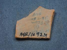 | Description / विवरण | It is a broken fragment of a pot made of terracotta was found in Agroha trench no. WAP3, layer no.3. It is well fired and color is red. It has some cut marks and flaking on its surface. It is wheel made pottery. |