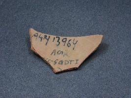 | Description / विवरण | It is a broken fragment of a pot made of terracotta was found in Agroha trench no.XC9,layer no.17. It is well fired and color is red. It has some cut marks and flaking on its surfaces. It is a wheel made pottery. |