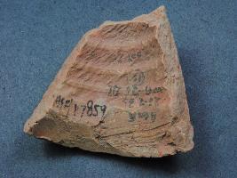 | Description / विवरण | It is a broken fragment of a bowl made of terracotta was found in Agroha trench no. WA26, layer no.11. It is well fired and color is red. It has some cut marks and flaking on its surface. It is wheel made pottery. |