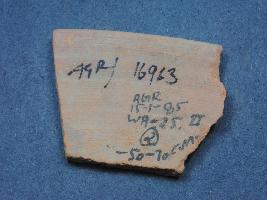 | Description / विवरण | It is a broken fragment of a bowl made of terracotta was found in Agroha trench no. WA26, layer no.2. It is well fired and color is red. It has some cut marks and flaking on its surface. It is wheel made pottery. |