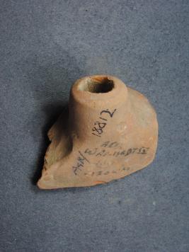 | Description / विवरण | It is a broken fragment of a Spout made of terracotta was found in Agroha trench no. WAP13, layer no.14. It is well fired and color is red. It has some cut marks and flaking on its surface. |