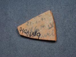 | Description / विवरण | It is a broken fragment of a pot made of terracotta was found in Agroha trench no. XC8, layer no.10. It is well fired and color is red. It has some cut marks and flaking on its surface. It is wheel made pottery. |