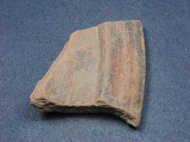 | Description / विवरण | It is a broken rim fragment of a pot made of terracotta was found in Agroha trench no.XAT10,layer no.13. It is well fired and color is red. It has some cut marks and flaking on its surface. It is a wheel made pottery. |