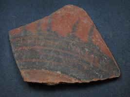 | Description / विवरण | It is a broken fragment of a pot made of terracotta was found in Agroha trench no.XD7,layer no.7. It is well fired and color is red. It has some cut marks and flaking on its surface. It is wheel made pottery.Its outer side carved by black slip deisgn. |