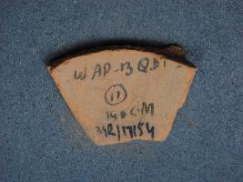 | Description / विवरण | It is a broken fragment of a pot made of terracotta was found in Agroha trench no.WAP13,layer no.11. It is well fired and color is red. It has some cut marks and flaking on its surface. It is wheel made pottery. |