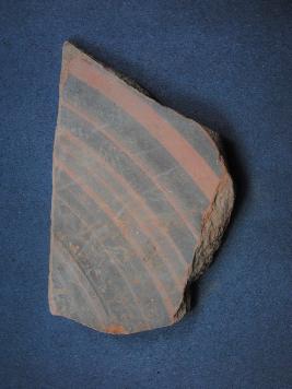 | Description / विवरण | It is a broken fragment of a pot made of terracotta was found in Agroha trench no.WAM13, layer no.4. It is well fired and color is red. It has some cut marks and flaking on its surfaces. It is a wheel made pottery.Its outer side carved by black slip design. |