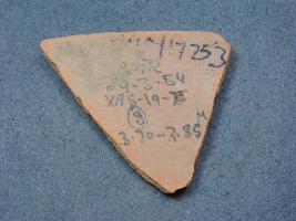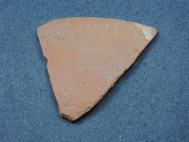 | Description / विवरण | It is a broken fragment of a pot made of terracotta was found in Agroha trench no.XAS19, layer no.9. It is well fired and color is red. It has some cut marks and flaking on its surfaces. It is a wheel made pottery. |