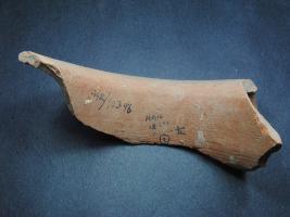 | Description / विवरण | It is a broken rim fragment of a pot made of terracotta was found in Agroha trench no. XF10, layer no.2. It is well fired and color is red. It has some cut marks and flaking on its surface. It is wheel made pottery. |