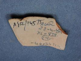 | Description / विवरण | It is a broken fragment of a bowl made of terracotta was found in Agroha trench no.XC8,layer no.14. It is well fired and color is red. It has some cut marks and flaking on its surfaces. It is a wheel made pottery. |