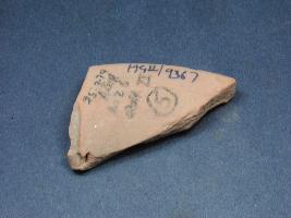 | Description / विवरण | It is a broken rim fragment of a pot made of terracotta was found in Agroha trench no. WA13, layer no.16. It is well fired and color is red. It has some cut marks and flaking on its surface. It is wheel made pottery. |