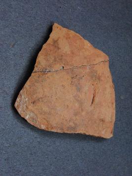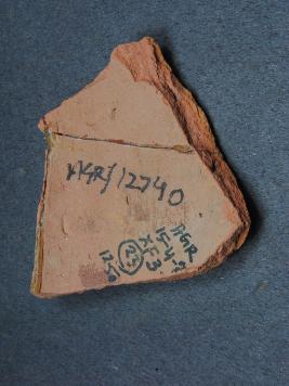 | Description / विवरण | It is a broken fragment of a pot made of terracotta was found in Agroha trench no. XF3, layer no.23. It is well fired and color is red. It has some cut marks and flaking on its surface. It is wheel made pottery. |