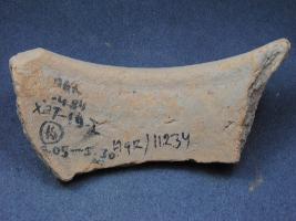 | Description / विवरण | It is a broken rim fragment of a pot made of terracotta was found in Agroha trench no.XAT13, layer no.2. It is well fired and color is red. It has some cut marks and flaking on its surface. It is wheel made pottery. |