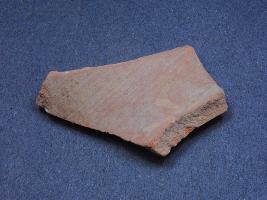 | Description / विवरण | It is a broken fragment of a pot made of terracotta was found in Agroha trench no. XE8,layer no.1. It is well fired and color is red. It has some cut marks and flaking on its surface. It is wheel made pottery. |