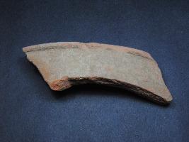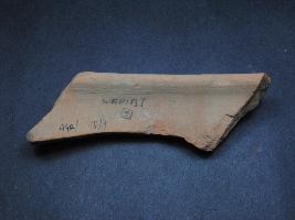 | Description / विवरण | It is a broken rim fragment of a pot made of terracotta was found in Agroha trench no. WAP9, layer no.9. It is well fired and color is red. It has some cut marks and flaking on its surface. It is wheel made pottery. |