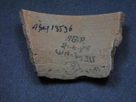 | Description / विवरण | It is a broken rim fragment of a pot made of terracotta was found in Agroha trench no.WA13,layer no.4. It is well fired and color is red. It has some cut marks and flaking on its surfaces. It is a wheel made pottery. |