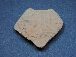 | Description / विवरण | It is a broken fragment of a pot made of terracotta was found in Agroha trench no.WA26,layer no.3. It is well fired and color is red. It has some cut marks and flaking on its surfaces. It is a wheel made pottery.Its outer side carved by projected line design. |
