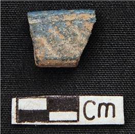 | Description / विवरण | A small broken piece of potsherd having slanted line design on it. |