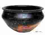 | Description / विवरण | Black and red ware deep bowl with pyriform base, carinated waist, convex neck with splayed out externally thickened flat rim. A prominent groove on the shoulder. |
