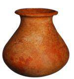| Description / विवरण | A pear shaped with round base, concave body, slopy shoulders, with splayed out externally thick blunt rim. Of medium fabric it is treated with fine red slip which is peeled off at many places. |