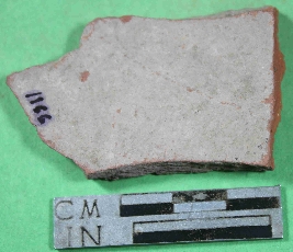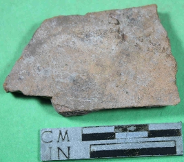 | Description / विवरण | A fragment of potsherd of red ware with uneven in shape,showing square shaped graffti marks on exterior.Its colour is red and smooth surface. |