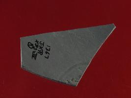 | Description / विवरण | It s a piece of pottery in uneven shape. Surface is smooth and curved. Some irregular marks can be seen on both sides. Appearance is grey. |